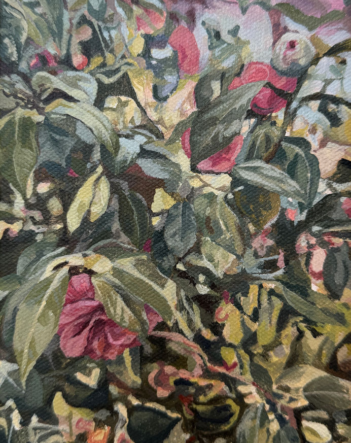 In order to investigate this theme, I selected one of my photos that I had taken while neighbourhood walking on the North Shore, as the subject of a series of paintings. This photograph was painted multiple times, thereby creating many different rendering of the same subject matter. This series of paintings aim to show the many internal perceptions of the observer that emerged each time this photograph was painted.